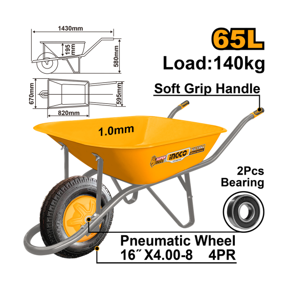 CARRINHO MAO CHAPA 65L PNEU CAMARA INGCO